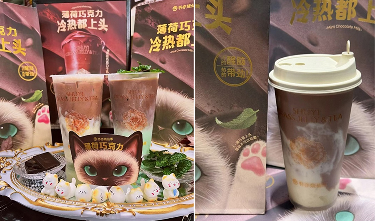 在“颜值即正义”的新消费时代,书亦将“萌宠美学”作为巧克力新品的营销卖点。全国门店里原创猫咪形象的萌系包材和CG视频专属互动,巧妙击中铲屎官的身份认同,让消费者情感共鸣从产品延伸至品牌认同。另,利用猫咪对薄荷的喜爱和沉迷属性,场景化植入饮品的具象化卖点,无疑更具感染力和说服力,也更能打动消费者。大批网友在社交平台上晒图种草,“云吸猫,今天被书亦的暹罗猫杯套治愈了。”,“今天变身薄荷味的猫猫!”。